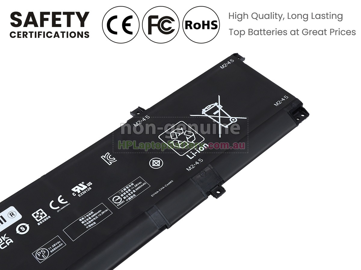 This high quality replacement HP Omen 16-AM1000NIA laptop battery is designed with the highest control standards; have internal circuit boards with smart chips ( Cell imbalance shut off protection, Thermal runaway protection, Overcharge shut off protection, Over discharge shut off protection, High/low temperature shut off protection ), and are made from eco-friendly materials without lead or mercury. Every replacement HP laptop battery has Certified by CE, UL, ROHS, ISO9001/9002 and has passed through strict safety tests. Long lasting, this extended 6 cells replacement HP Omen 16-AM1000NIA battery can be charged/discharged for more than 600-800 cycles.