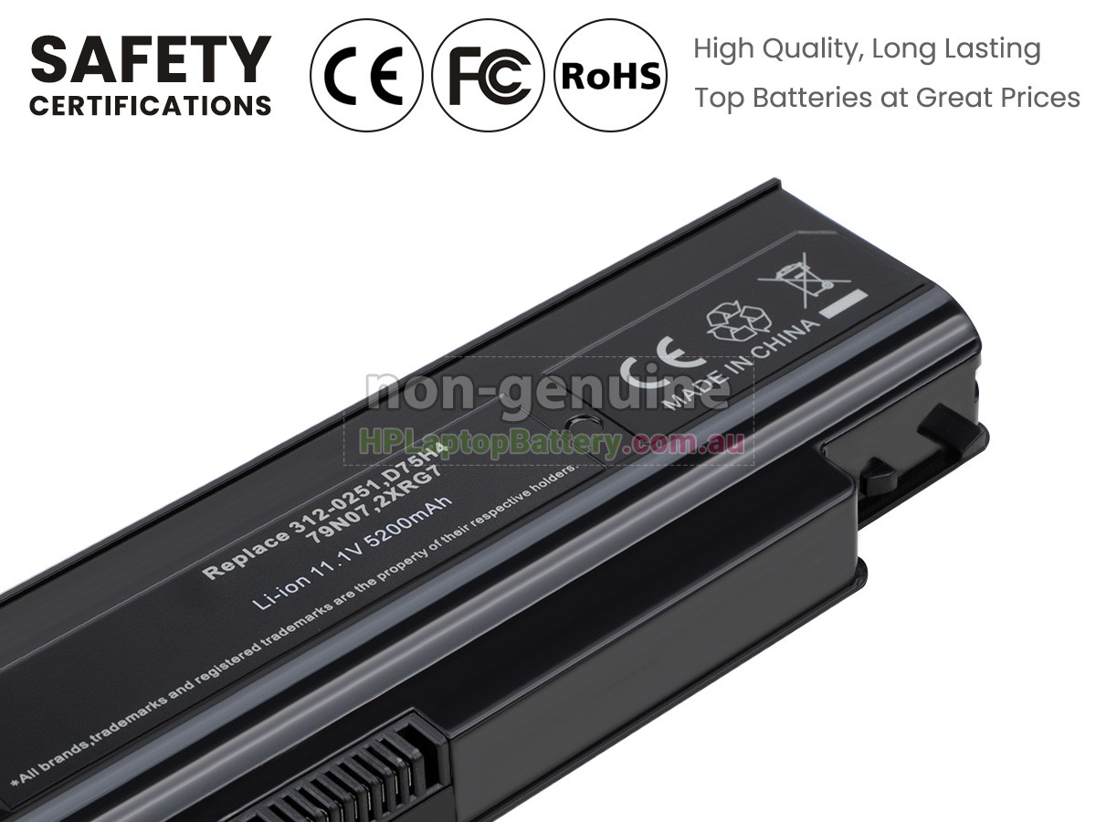 This high quality replacement Dell 02XRG7 laptop battery is designed with the highest control standards; have internal circuit boards with smart chips ( Cell imbalance shut off protection, Thermal runaway protection, Overcharge shut off protection, Over discharge shut off protection, High/low temperature shut off protection ), and are made from eco-friendly materials without lead or mercury. Every replacement Dell laptop battery has Certified by CE, UL, ROHS, ISO9001/9002 and has passed through strict safety tests. Long lasting, this extended 6 cells replacement Dell 02XRG7 battery can be charged/discharged for more than 600-800 cycles.