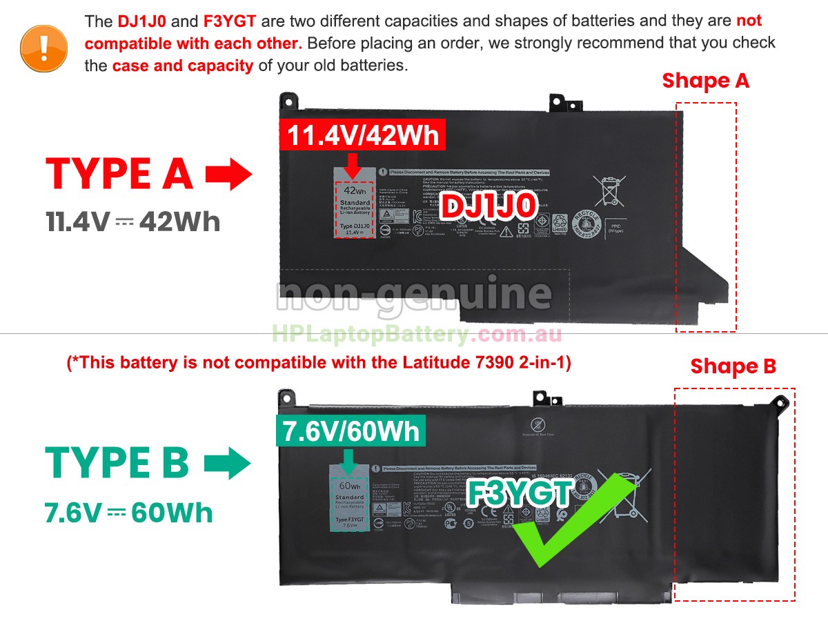 Before placing an order please ensure your old originanl battery is 11.4V 42Wh(3 cell). This battery is not compatible with the voltage 7.6V. This brand new replacement Dell PGFX4 battery is made with high quality cells from Samsung. Our replacement battery for Dell PGFX4 laptop is 100% compatible and meet or exceeds original battery performance.
