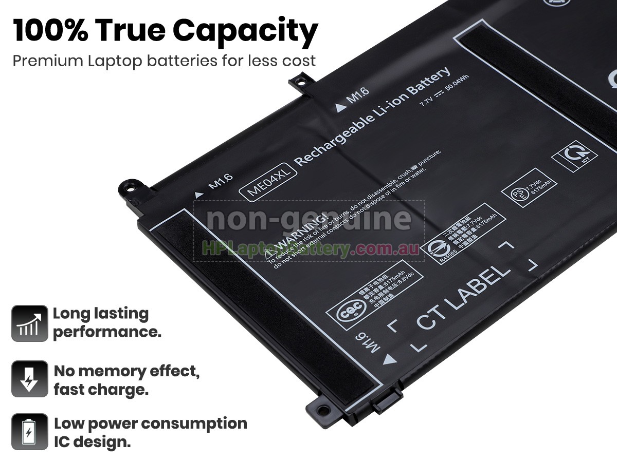 This high quality replacement HP 937519-171 laptop battery is designed with the highest control standards; have internal circuit boards with smart chips ( Cell imbalance shut off protection, Thermal runaway protection, Overcharge shut off protection, Over discharge shut off protection, High/low temperature shut off protection ), and are made from eco-friendly materials without lead or mercury. Every replacement HP laptop battery has Certified by CE, UL, ROHS, ISO9001/9002 and has passed through strict safety tests. Long lasting, this extended 6 cells replacement HP 937519-171 battery can be charged/discharged for more than 600-800 cycles.
