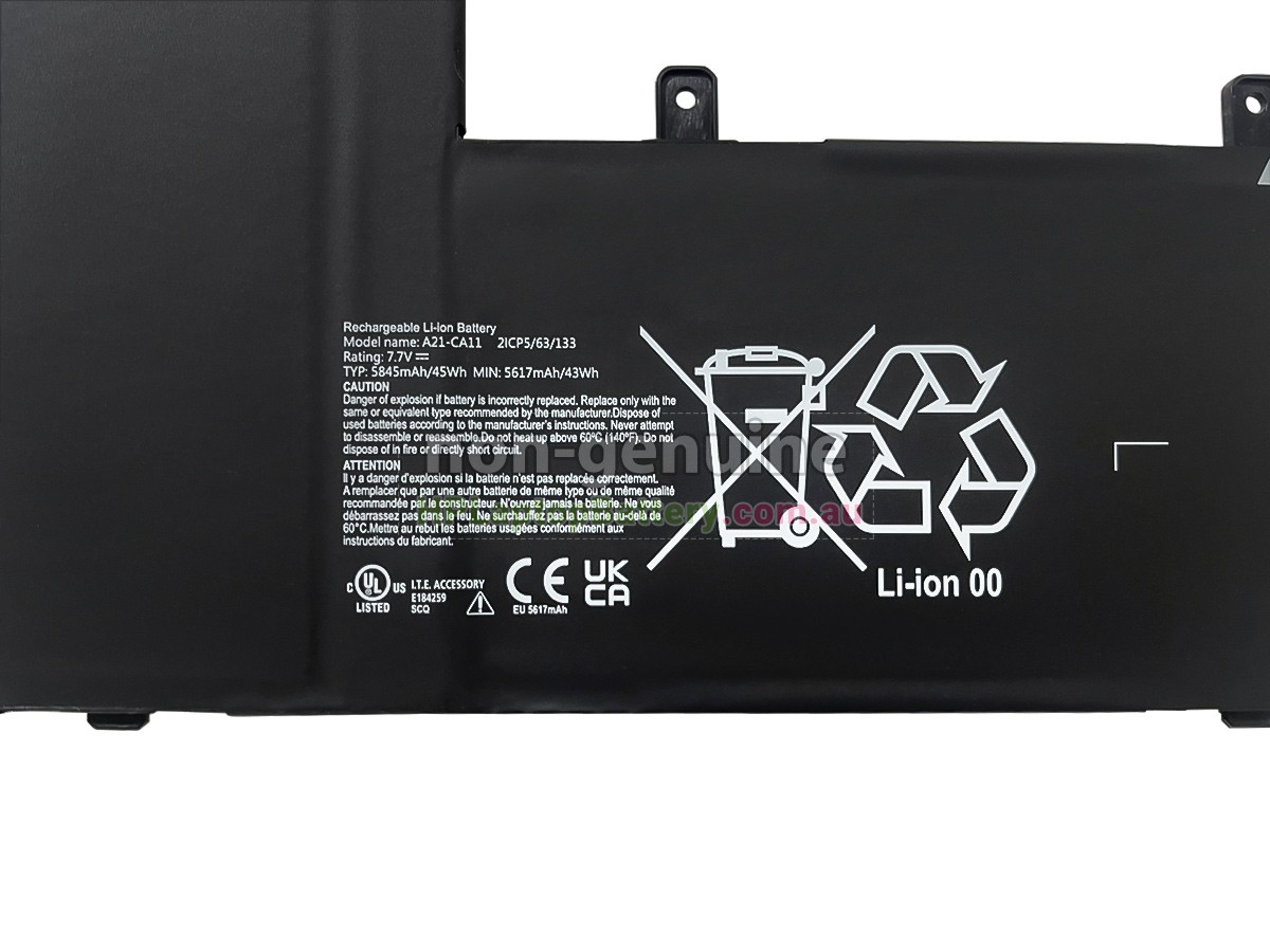 - If your replacement A21-CA11 battery will not be in use for a long time, remove it from your laptop and store it in an Anti-Static bag in a dry, cool place; Make sure that the battery is preserved with electricity(about 30-50% of its capacity) and it is highly recommended that the battery should be charged at least once a month.