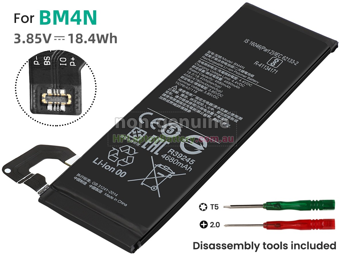 Thank you for shopping the XiaoMi BM4N device replacement battery at HPLaptopBattery.com.au. Please make sure that the model of the KI04 battery you chosen can fit well with your XiaoMi device before placing an order. Each battery has its model name(or part number,P/N) which you can find on your original battery. If you can't find the matchable model or the compatible part No., please tell us the part number of your original battery or the exact name of your machine via email and we will recommend you the right battery.