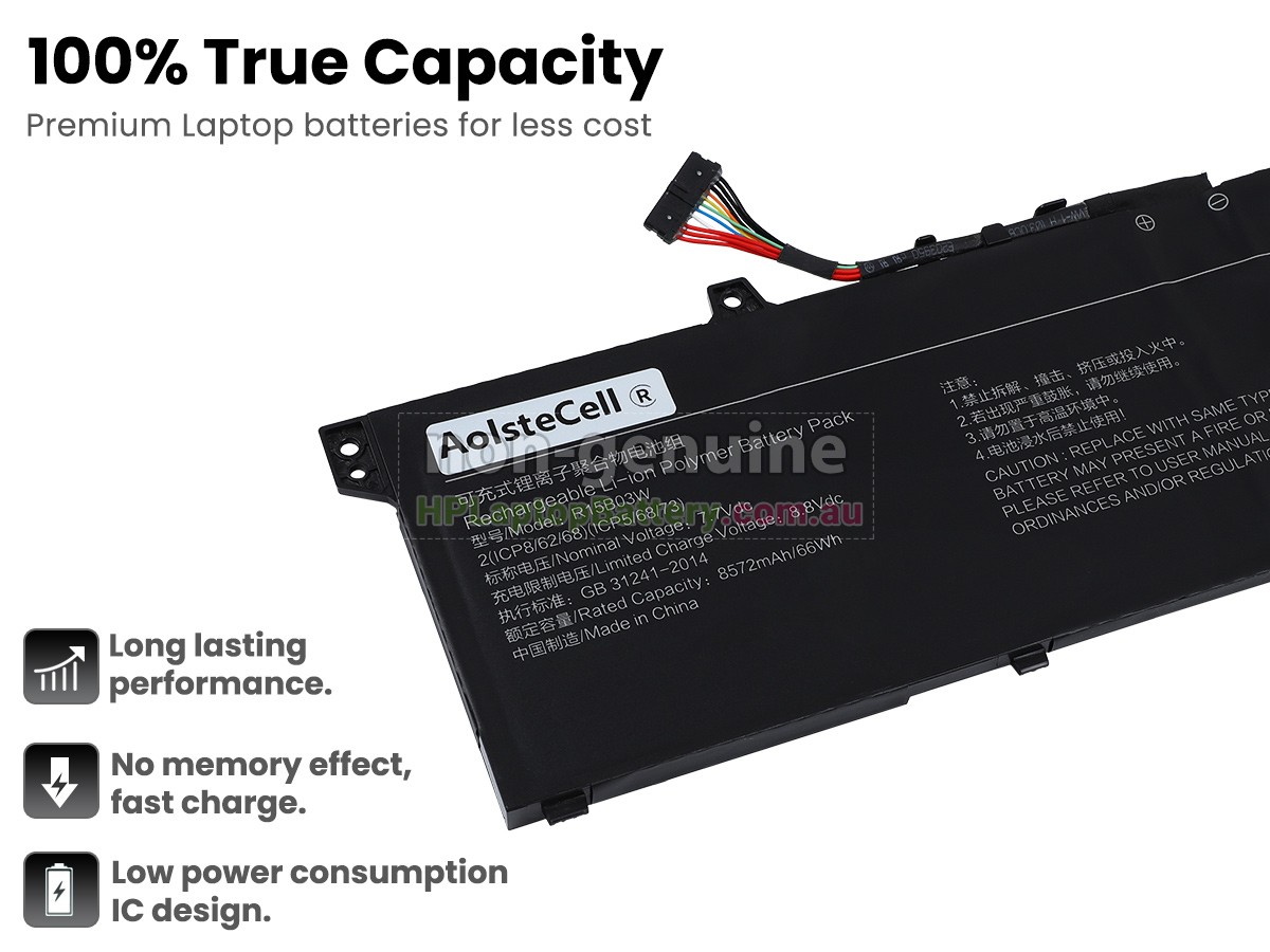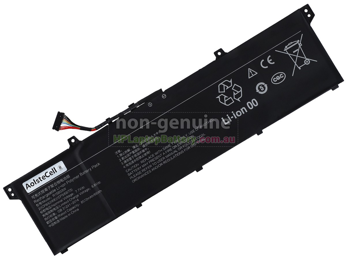 This brand new 66Wh(4 cells) replacement XiaoMi R15B03W battery is made with high quality cells from Samsung. All our Li-Polymer replacement batteries for XiaoMi R15B03W have been tested and proven to match and/or exceed original battery performance and are 100% compatible with Original Manufacturer Specifications. Every piece of replacement battery for XiaoMi R15B03W laptop has been tested on HP systems to ensure the safety for your XiaoMi laptop.